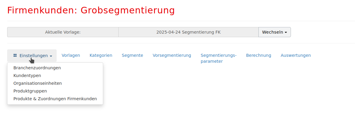 Personalbemessung Stab / Marktfolge - Einstellungen