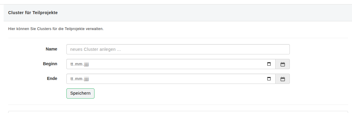 Die Mit Release 2.254.1 eingeführten Teilprojekt-Cluster können jetzt optional mit einem Start- und Ende Datum versehen werden.